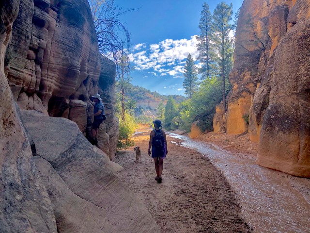 We readied ourselves and climbed down to begin our hike downstream, Daisy in the lead.