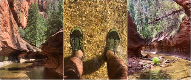 About 4 miles in, the trail climbs a slight rise, then descends and ends at a very pretty little canyon and pool. There were several people already here, relaxing on the rocks, cooling their feet in the water. I had on waterproof hiking shoes, so I forged ahead, to the surprise of the other hikers who remained seated, watching.