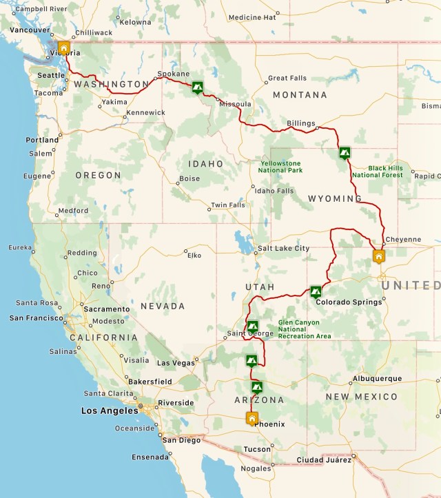 Phoenix was our southernmost destination on this trip, a mere 115 miles north of the Mexico/USA border and 2,700 miles from our starting point just south of the Canada/USA border. We’re looking forward to heading back North.