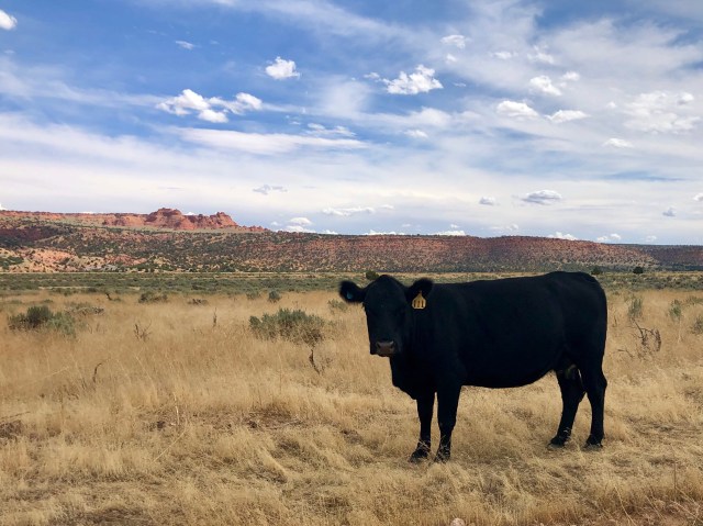 Back out on the “main” road, we continued south through open range land, passing several tagged cows wandering along the road.