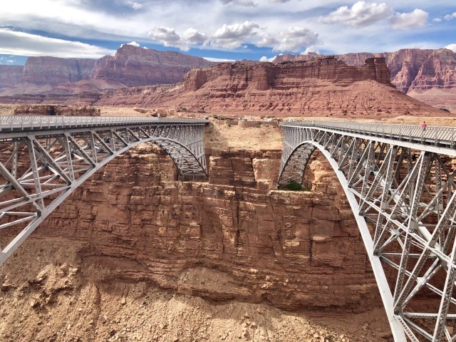 … over the Navajo Bridge, a pair of steel spans completed in 1929. At 470 feet above the Colorado River, these are 9th highest bridges in the United States (the first span, to the right, is now open only to pedestrian traffic).