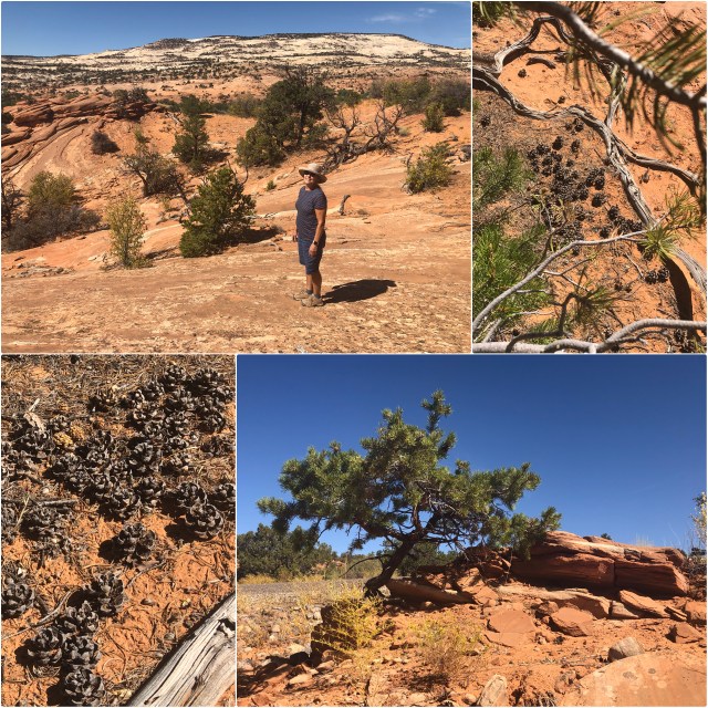 We had also stopped here to look at the Pinyon (or Piñon) Pines that grow at this elevation (around 6,000 feet). Notice how all the pinecones have landed the same way on the ground. Ever hear of pine nuts? In North America, these are the plants and pinecones they come from.