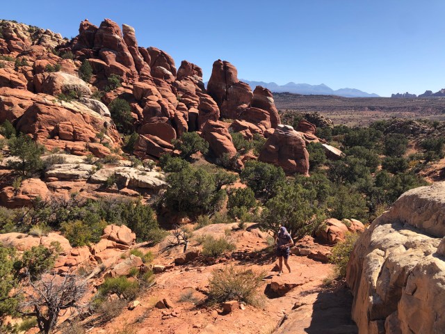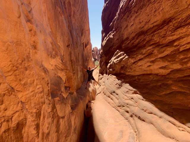 One of the most popular and most challenging hikes in Arches National Park, Fiery Furnace spans a roughly 2-mile route between towering, maze-like canyon walls. Exploring it is a spectacular, otherworldly experience not without its challenges. Unlike many hiking trails, which feature steep climbs and high elevations, Fiery Furnace tests your ability to keep your bearings and find solid footing in a disorienting place. There are no trail signs or markers, and GPS units have a tendency to fail among the lofty sandstone walls. Navigating the difficult passages takes stamina, agility, and acute attention to detail.