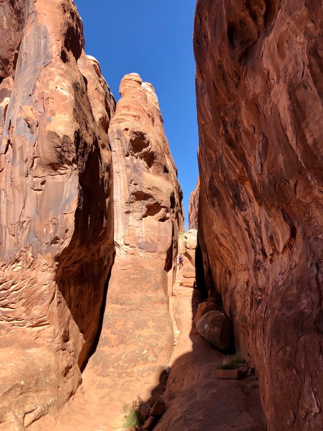 The NPS website for Arches NP is pretty clear that you must get a permit to hike Fiery Furnace, so we stopped in to apply at the Visitor Center when we first arrived in Moab on Sunday. There are two options: 1) take the ranger-guided tour; or, 2) go it alone.