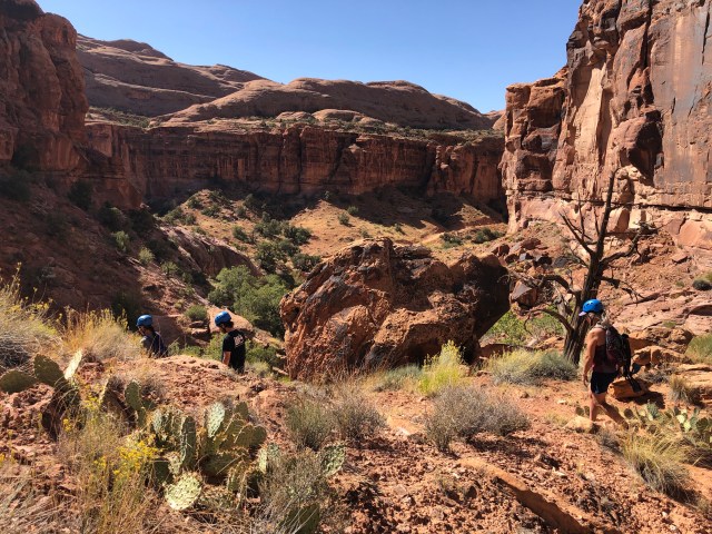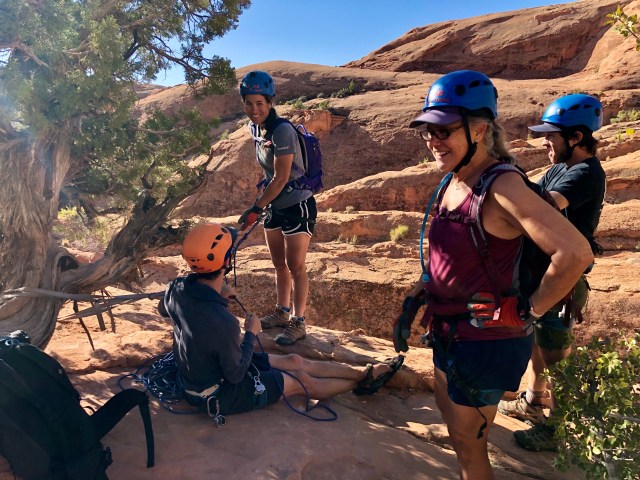 Class 3 – Intermediate Canyoneering – Rappels or technical climbing and/or downclimbing. A rope is required for belays and single-pitch rappels. Retreat upcanyon would require fixing ropes.