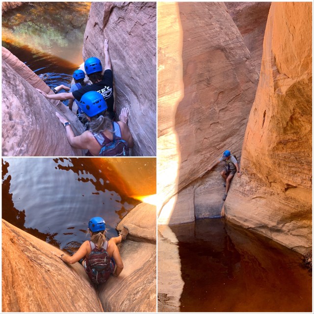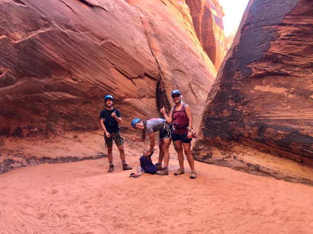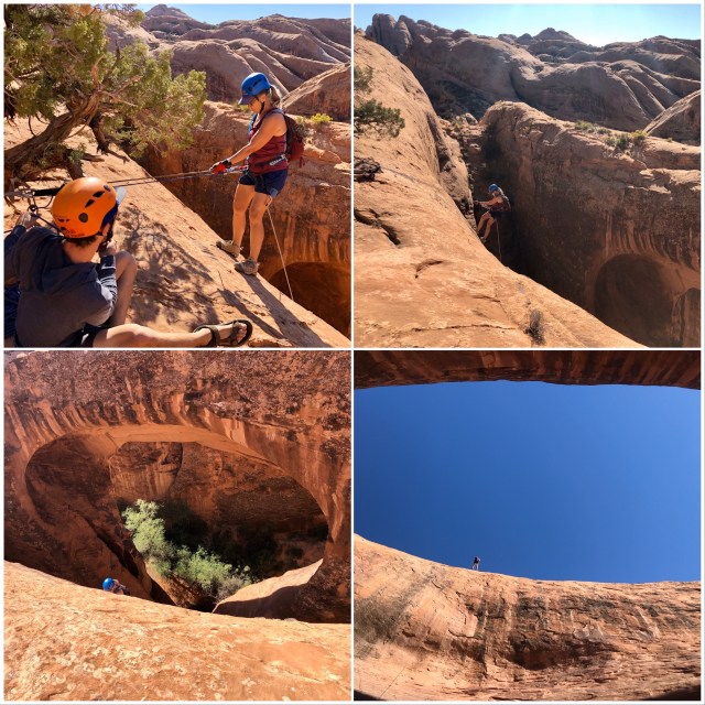 The last rappel was another long one – 110 feet – and a bit more difficult because it was not a straight drop down. First, we had to belay down to a lower ledge and then swing left before descending. Kelly went first, followed by Dakota and then Dale.
