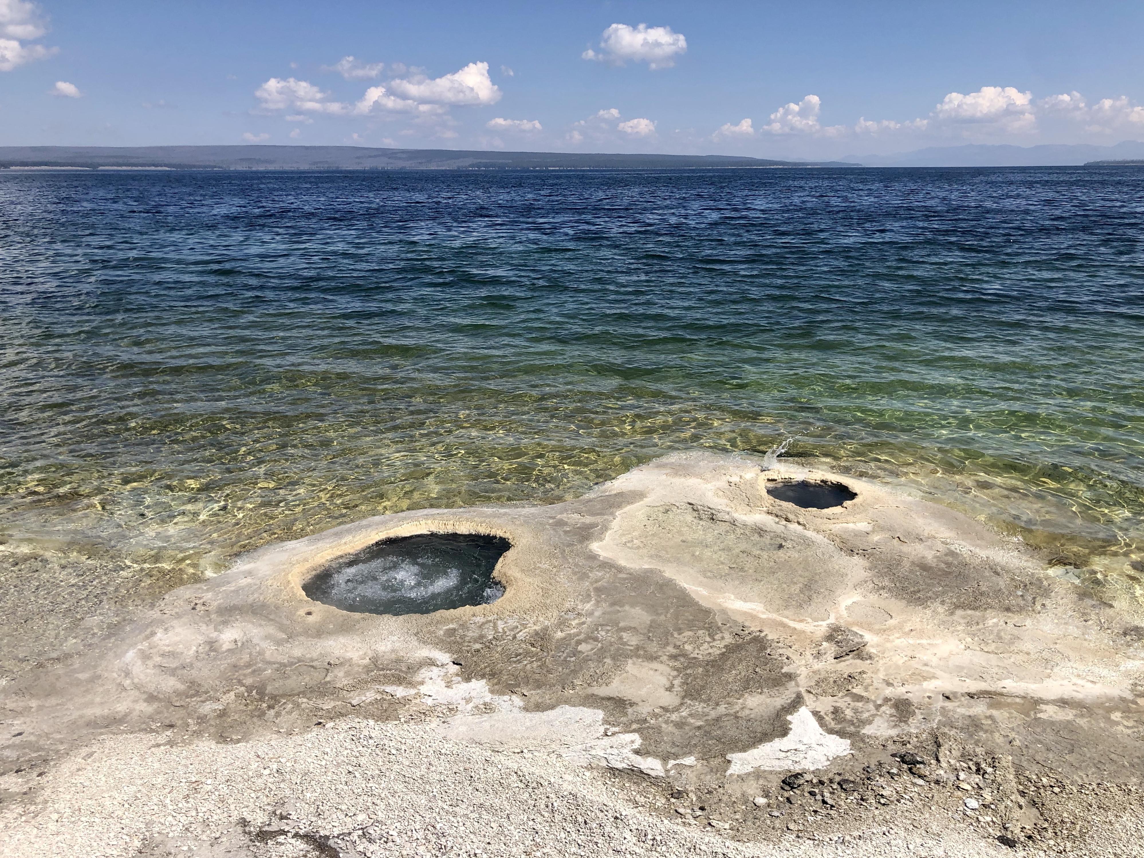 … stopping to note the boiling water emanating from small semi-submerged hot springs in the lake.