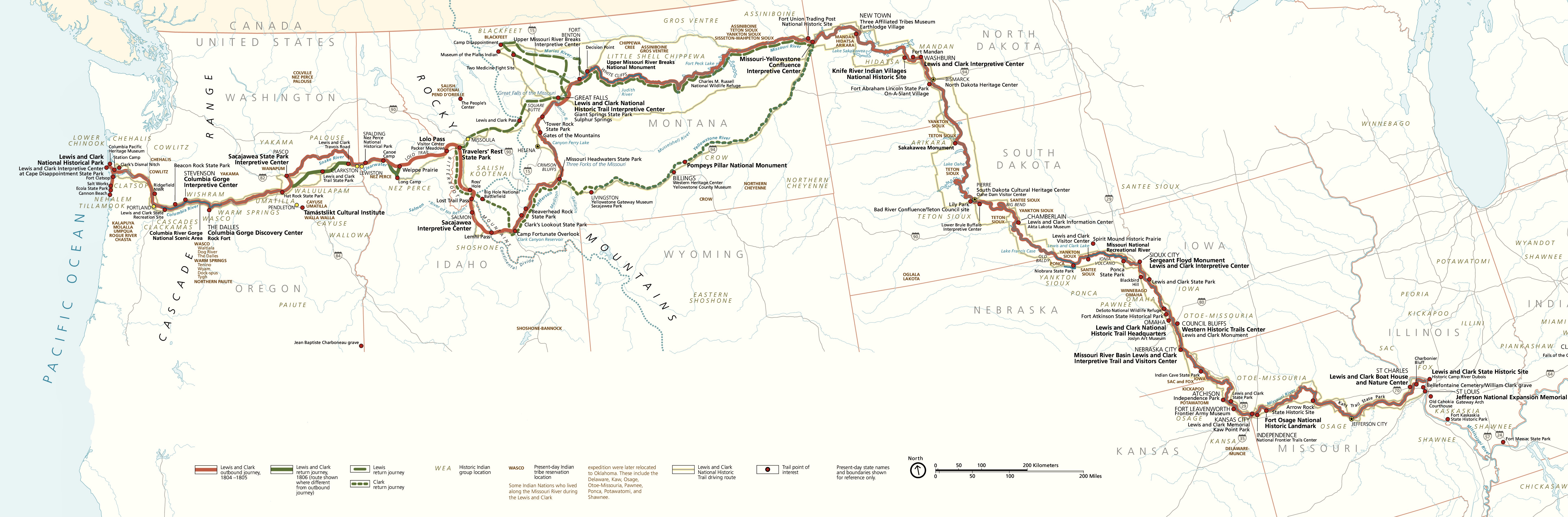 On their return from the Pacific in 1806, Lewis and Clark split up near modern-day Missoula, Montana, and Lewis and nine of his men explored to the north, then returned downstream on the Missouri River. Clark, meanwhile, took 23 of the party, including his interpreters, Sacajawea and Charbonneau, on a more southerly route, returning by way of this very stretch of the Yellowstone River.
