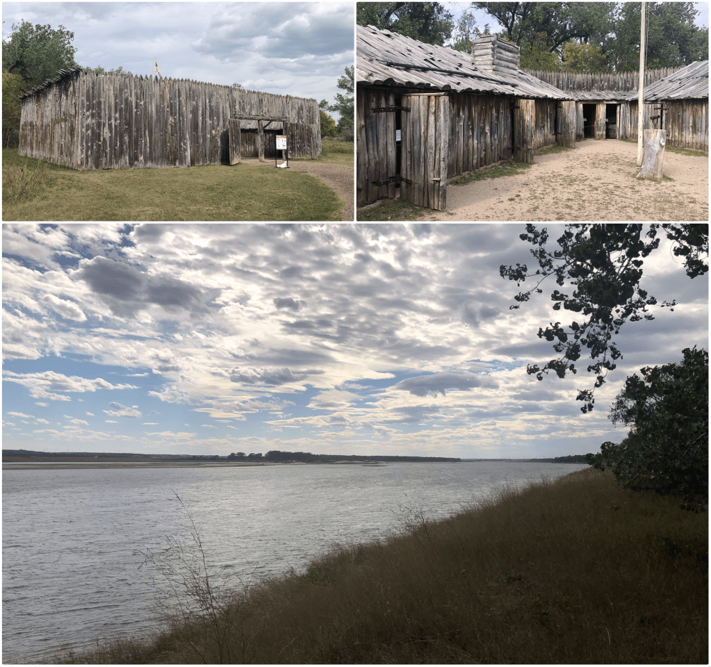 After visiting the Knife River Villages, we drove north to Lake Sakakawea where we crossed the Missouri River, then traveled south along the east bank on US83 to Washburn where we visited the museum at the North Dakota Lewis & Clark Interpretive Center and the reproduction of Fort Mandan that the State of North Dakota has built on the Missouri River near its original location: