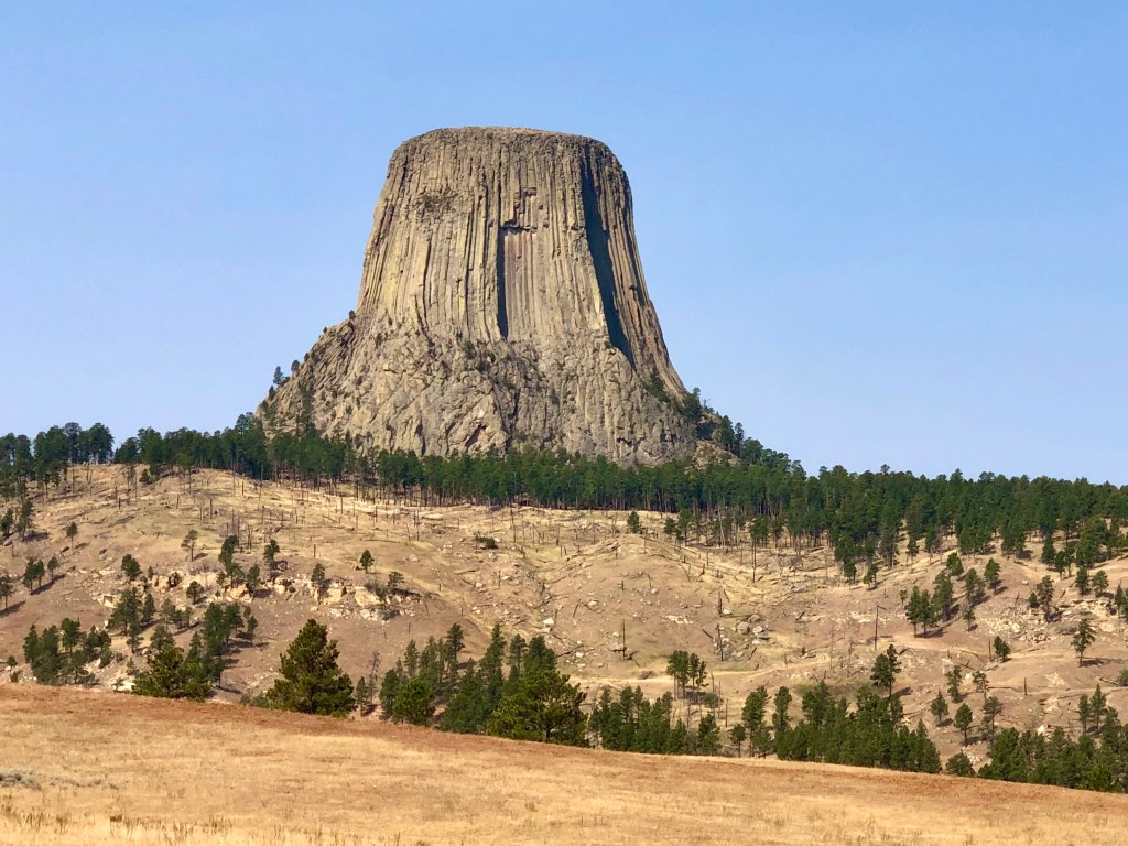 - Devils Tower National Monument rising out of the sandstone to the northwest in adjacent Wyoming.