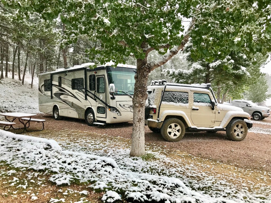 Our plan had been to go on a hike the next day, but given the crowds and racket from the ATVs and UTVs, we decided instead to make Labor Day a laundry and cleaning day. The next morning, September 8th, it snowed: