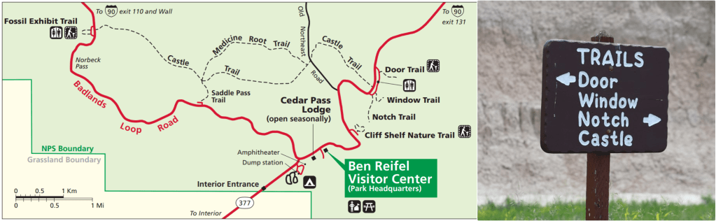 The scenic drive through Badlands National Park is called the “Badlands Loop Road,” although it doesn’t make a loop, unless you consider it to start and end in the little town of Wall and to include the 21 mile drive from there on I-90 to get to the Park’s Northeast Entrance.