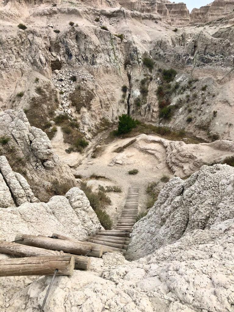 Approaching from the north, as we did, the canyons and ravines are hidden from view until you arrive in their midst, but approaching from the prairies to the south, these eroded plateau appears as a great barrier – a wall – and so it is called: the Badlands Wall.
