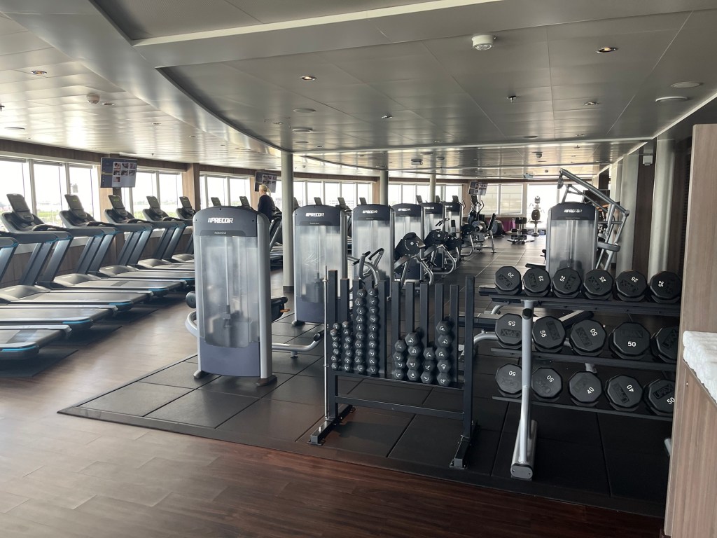 Most of our fellow travelers were retirees. There were only two kids aboard out of around 2,500 passengers. On sea days, I enjoyed reading and working out in the gym while Dale took spinning and exercise classes and knitted, her most recent hobby.