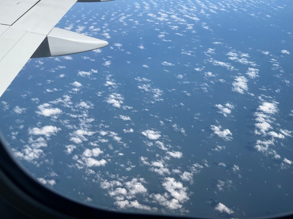 As we flew over the English coast, I marveled at the Hornsea 2 project, the world’s largest offshore wind power generation facility, consisting of 165 wind turbines, each having 266-foot long blades. If you look closely, you can see a bunch of them in this photo – all those white dots: