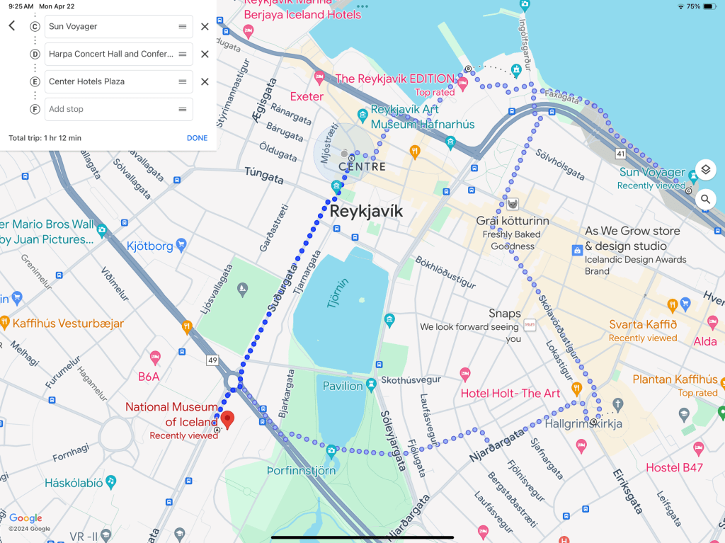 The next morning, we walked around the city to see a few of the sites. The National Museum of Iceland was our first stop and we recommend it. The exhibits were all in English and covered the founding of the island by the Vikings, among other things mostly historical.