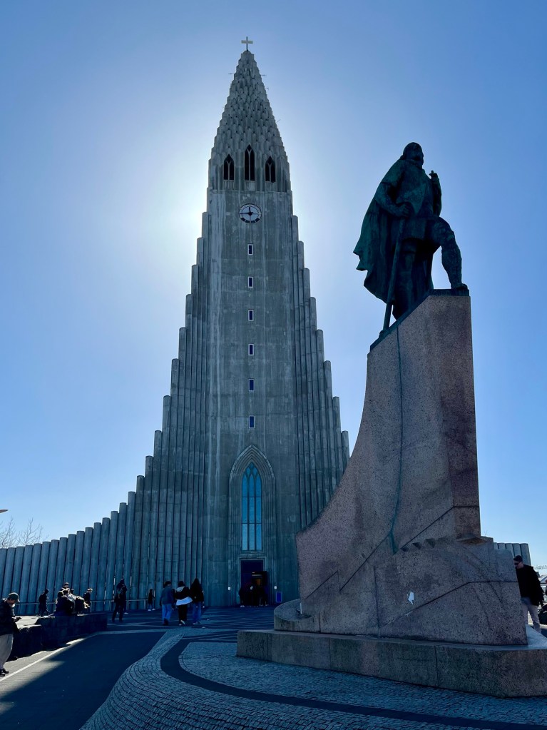 That’s a statue of Leif Erikson in front of the church. “Leif the Lucky” purportedly beat Christopher Columbus by discovering the North American continent around 1000 AD. Leif converted to Christianity just before making that journey, so maybe that’s why they decided to honor him here.