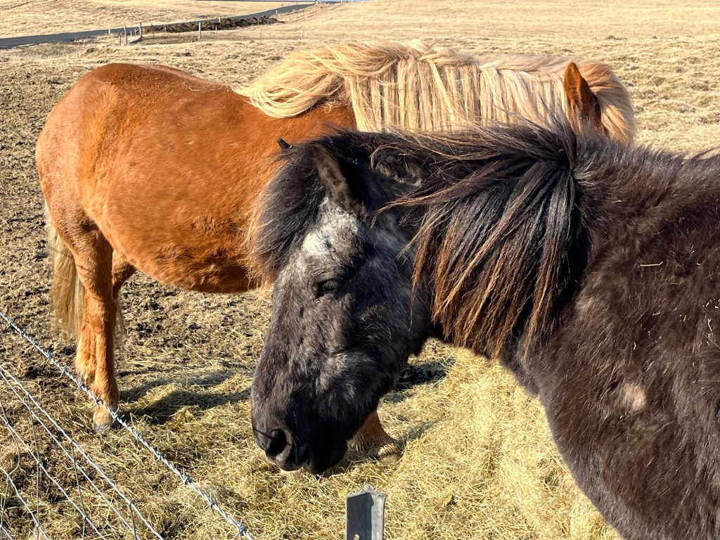 From Seljalandsfoss, we backtracked a few miles to our somewhat remote lodging for the next two nights, Hotel Lækur, a family-run operation, formerly a sheep farm. We were greeted at the gate by three Icelandic horses.