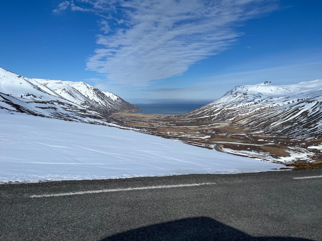 Once over the mountain pass, we descended into the Njarðvik valley, then traveled east along the coast…
