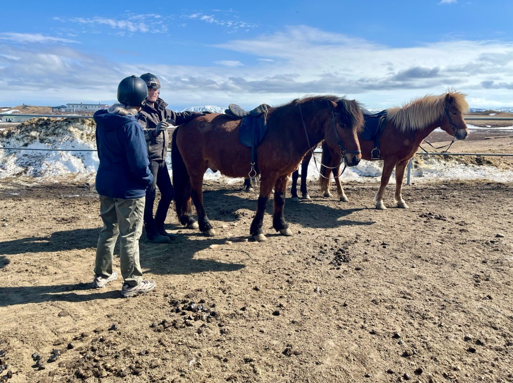 Something to know about riding horses in Iceland: the saddles they use are quite different from those used in the USA. No saddle horn. No blanket. No padding. Metal stirrups.