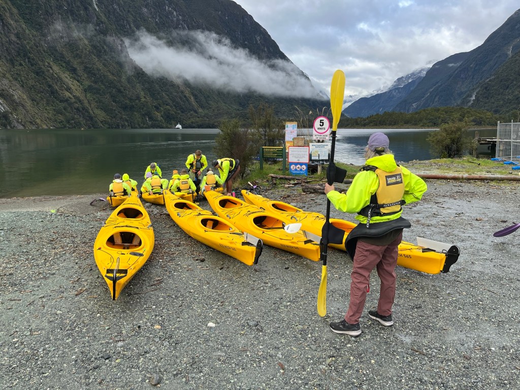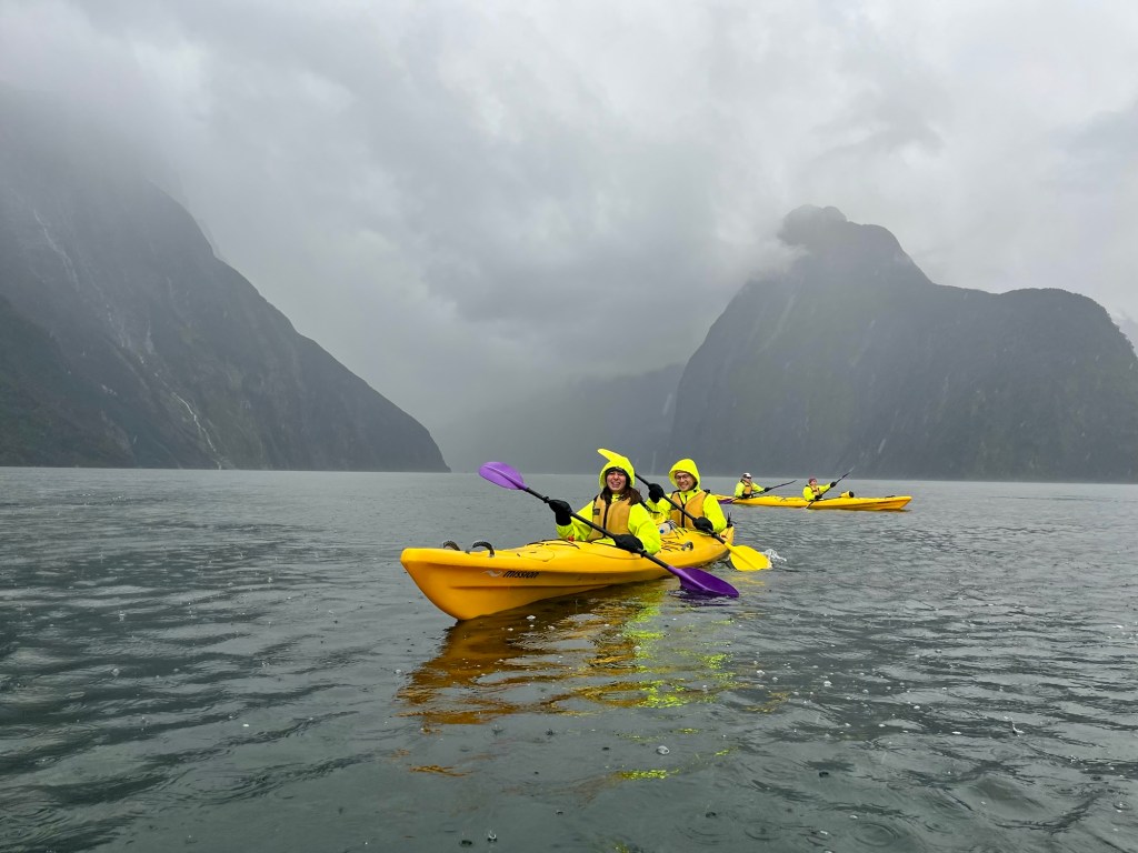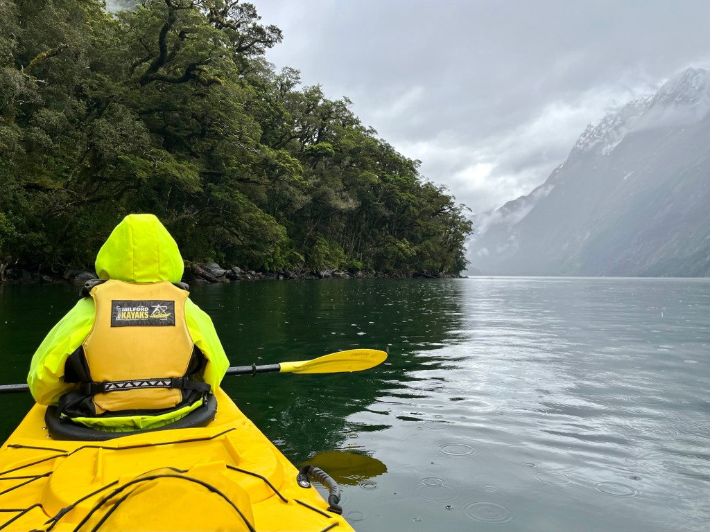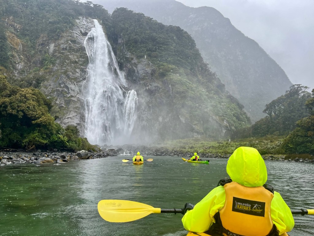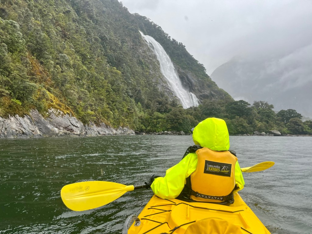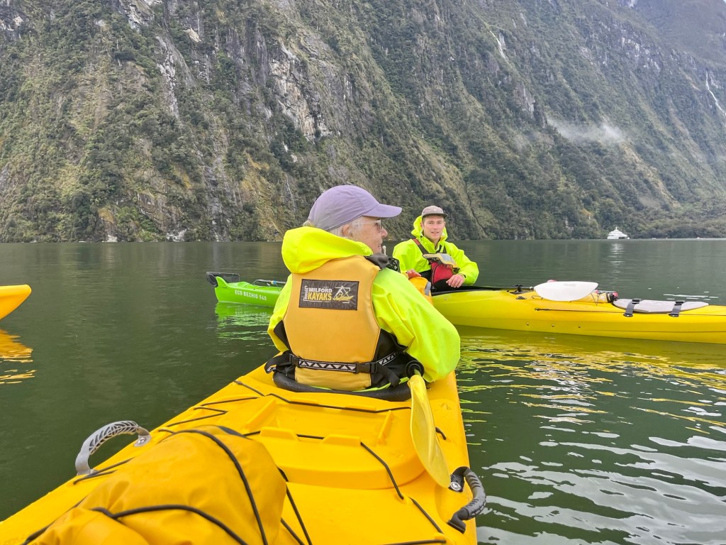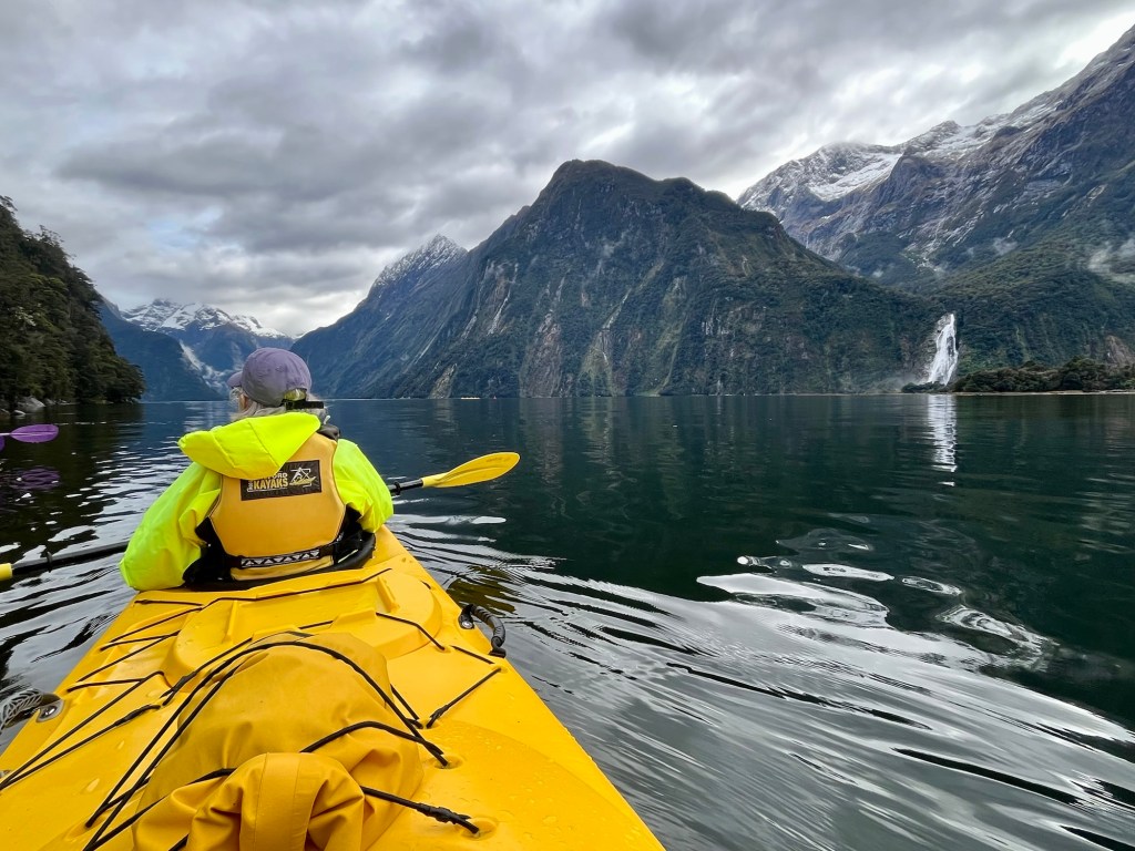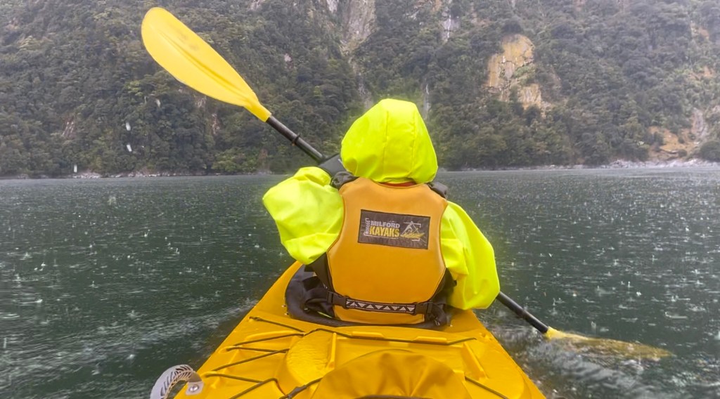 Monday morning we were up early to go kayaking in Milford Sound with Rosco’s Milford Kayaks on their half-day, guided rentals they call the “Sunriser Classic.”