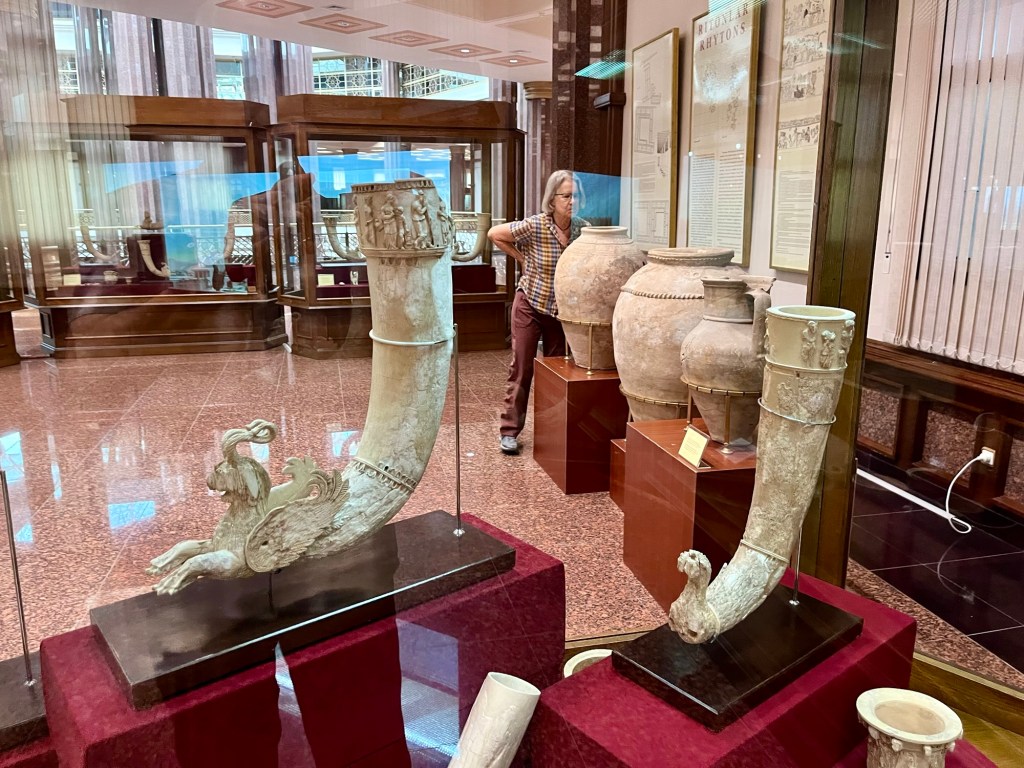 Our favorite artifacts were the ivory ryhtons, essentially intricately carved wine pitchers. Dale, of course, also liked the clay pots.