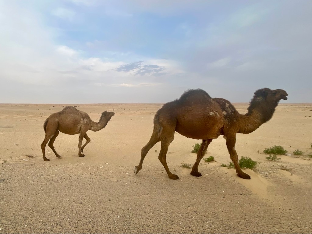 I had read that the Silk Road caravans of old were made up of Bactrian camels because these two-hump camels could store more water. More humps, more storage. But we saw exclusively Dromedary camels – one-humpers – on our drive across the desert. Perhaps the Bactrian camels are all in service somewhere.