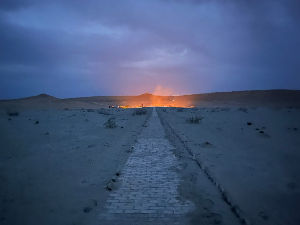 And this is the communal mess hall with the sun peaking above the dunes beyond.