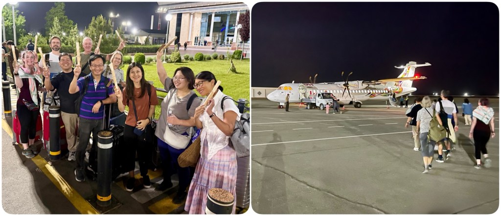 After a very full day exploring the mosques, madrassas, minarets and monuments of Khiva and a brief respite back at our hotel, we met up for a farewell dinner before being shuttled to Urgench airport, some 30 miles away, for a late-night flight back to Tashkent. Once there, we’ll all be going our separate ways.