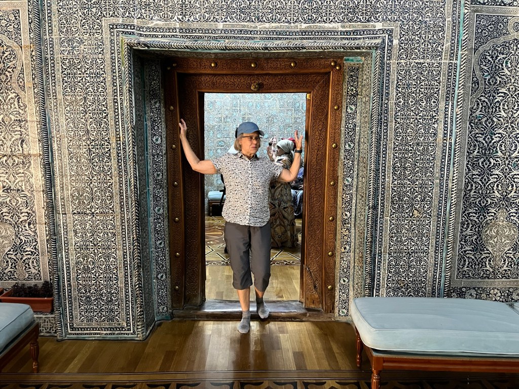 Our next stop was the Pahlavon Mahmud Mausoleum Complex, completed in 1701, built to honor and house the mortal remains of Pahlavon Mahmud (1247-1326), a famous local poet and wrestler. Sounds like inspiration for our own poetic world champion, “float like a butterfly, sting like a bee,” Muhammed Ali.