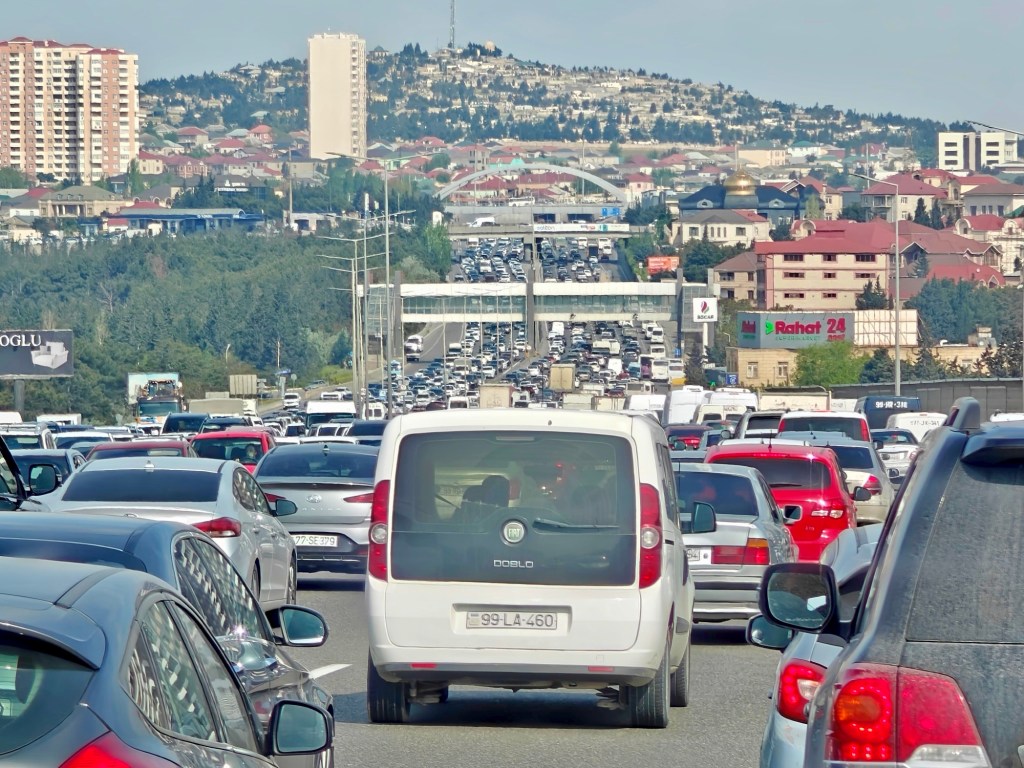 The morning we left Baku, Wednesday, April 30, the congestion was awful. Five lanes in each direction, bumper-to-bumper both ways. A typical weekday morning, said our driver.