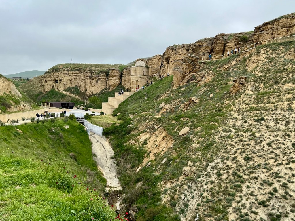 On the drive to Sheki, where we would be spending the night, we stopped briefly at the Diri Baba Mausoleum near Maraza, built into a cliff face in the 1400s AD.