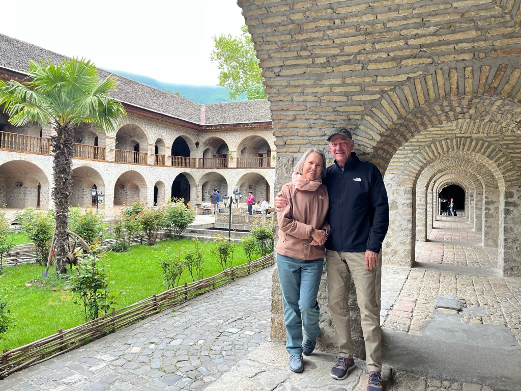 We walked down the hill to visit the restored caravanserai in Sheki, now a hotel. We spent the night at the Sheki Palace hotel, leaving our Italian companion, Serena, there. Her trip was over.