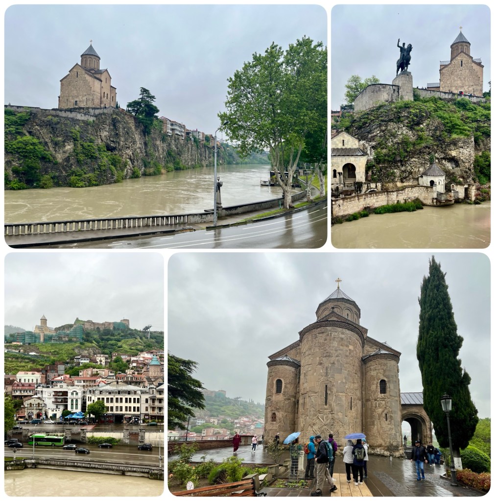 After walking to the Tsavkisistskali waterfall that is the source of the stream here, we retraced our steps, then crossed over the Kura River (into which the Tsavkisistskali stream flows) on the Metekhi Bridge before climbing up to the Metekhi Church, visible from the balcony of our hotel room.