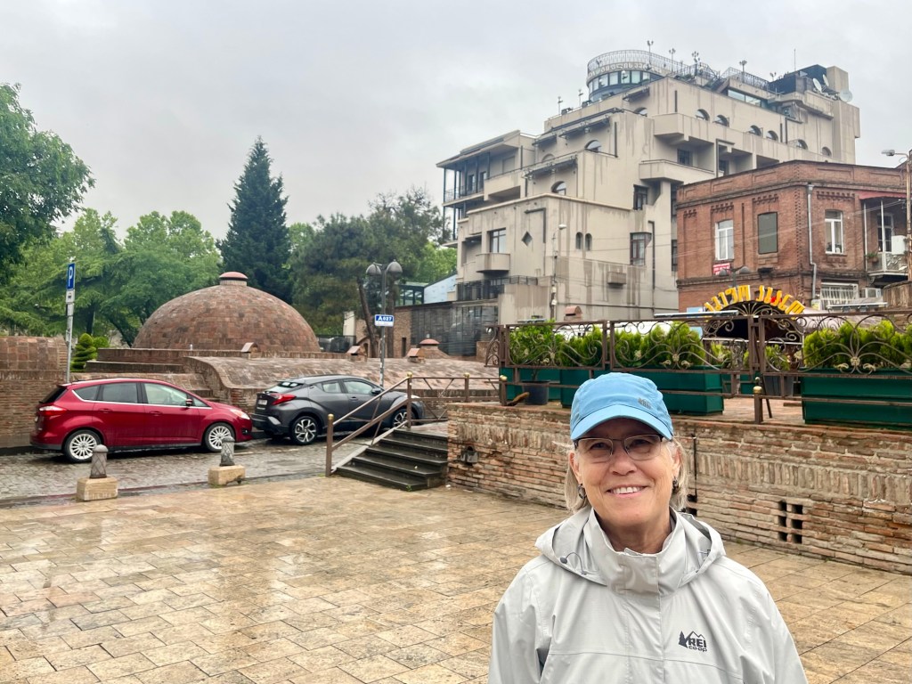 We started from our hotel, dead center of the old city of Tbilisi. That’s our hotel in the background in the photo below, by the way, the Tiflis Palace Hotel. The dome in the foreground to the left is a hammam, a turkish bath. There were a bunch of them surrounding our hotel.