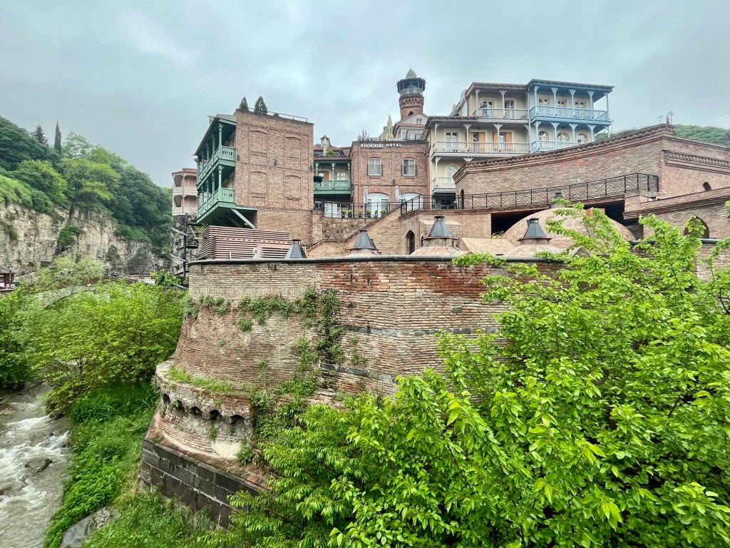 That row of buildings on the left are all bath houses, as is the blue mosque-looking building you see in the distance on the right, the Orbeliani Baths, a favorite of celebrities of today and years past, like writers Dumas and Pushkin.