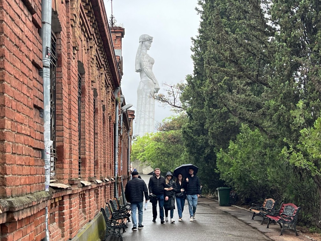 On top of Sololaki Hill, we walked over to where we could see the Kartlis Deda, the “Mother of Georgia” statue, erected in 1958 by the Soviets on the 1,500th anniversary of Tbilisi. In her left hand she holds a bowl of grapes for friends; in her right, a sword for enemies.