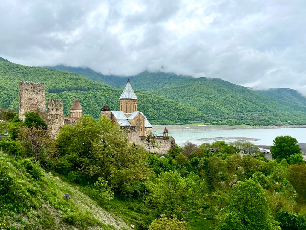 From Mtskheta, we drove north up the Aragvi River, past the Zhinvali Reservoir, to the Ananiri Fortress complex, constructed sometime in the 1200s AD as the seat of the Georgian Dukes of Aragvi.