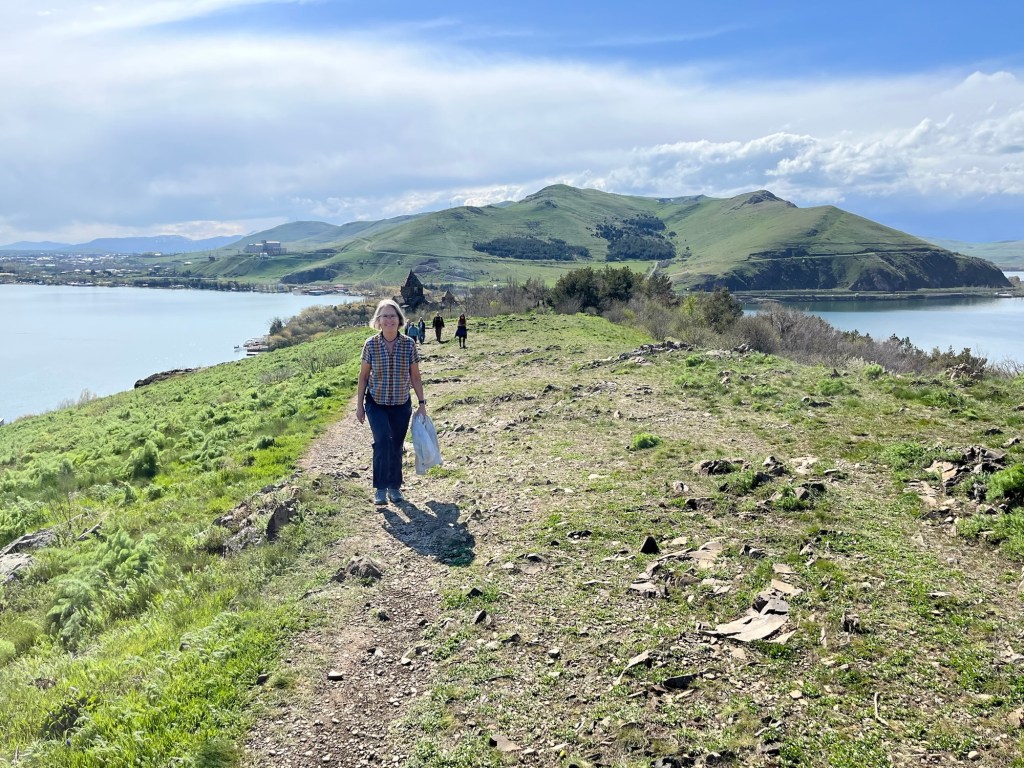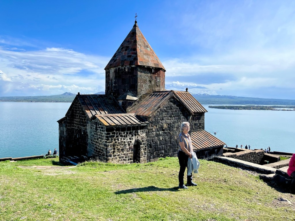 After lunch, we continued our drive through the Lesser Caucasus Mountains to Lake Sevan, east of Yerevan, the largest lake in the Caucasus, visible on the map, above.