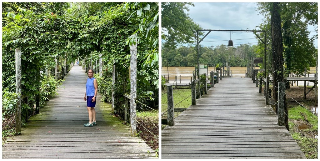 Here’s a view of one of the many boardwalks at the lodge. This one leads to our bungalow (left) from the dock (right). All the buildings are elevated on pilings and connected by boardwalks.