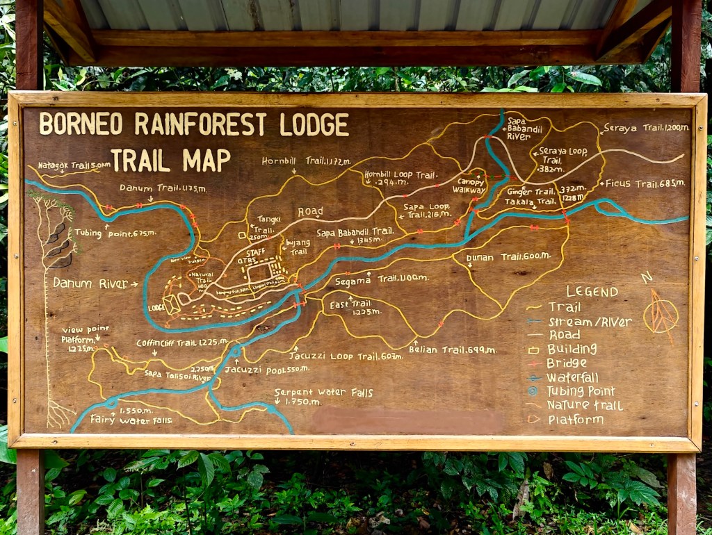 Then it occurred to me: there’s no development here, deep in the Danum Valley Conservation Area, a 169 sq. mi. tract of relatively undisturbed lowland rainforest (gold star on map, below).