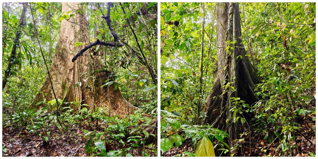 The tall trees in the rainforest have a surprisingly shallow root system; instead, they are stabilized by buttress roots spreading out horizontally. Farah explained that the soil more than a few feet down is of poor quality, plus there’s no need for a deep root system to get to water.