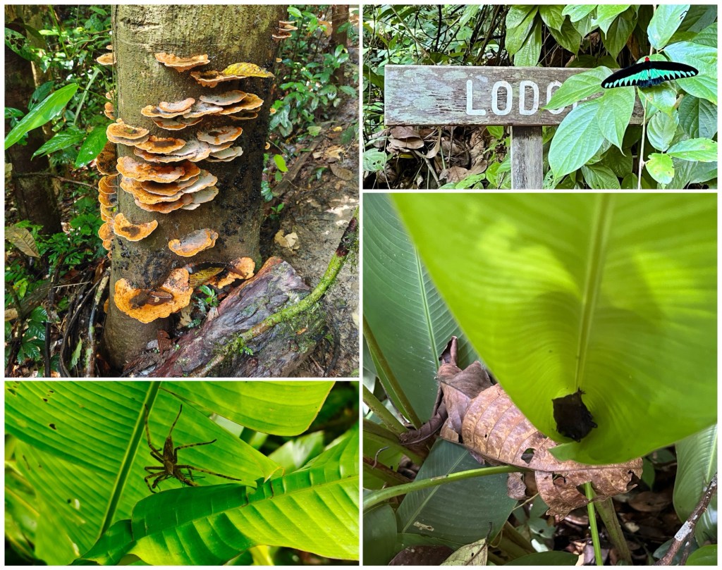 Here’s a sampling of what we saw along the way. That’s a bat sleeping inside a palm leaf on the bottom right.