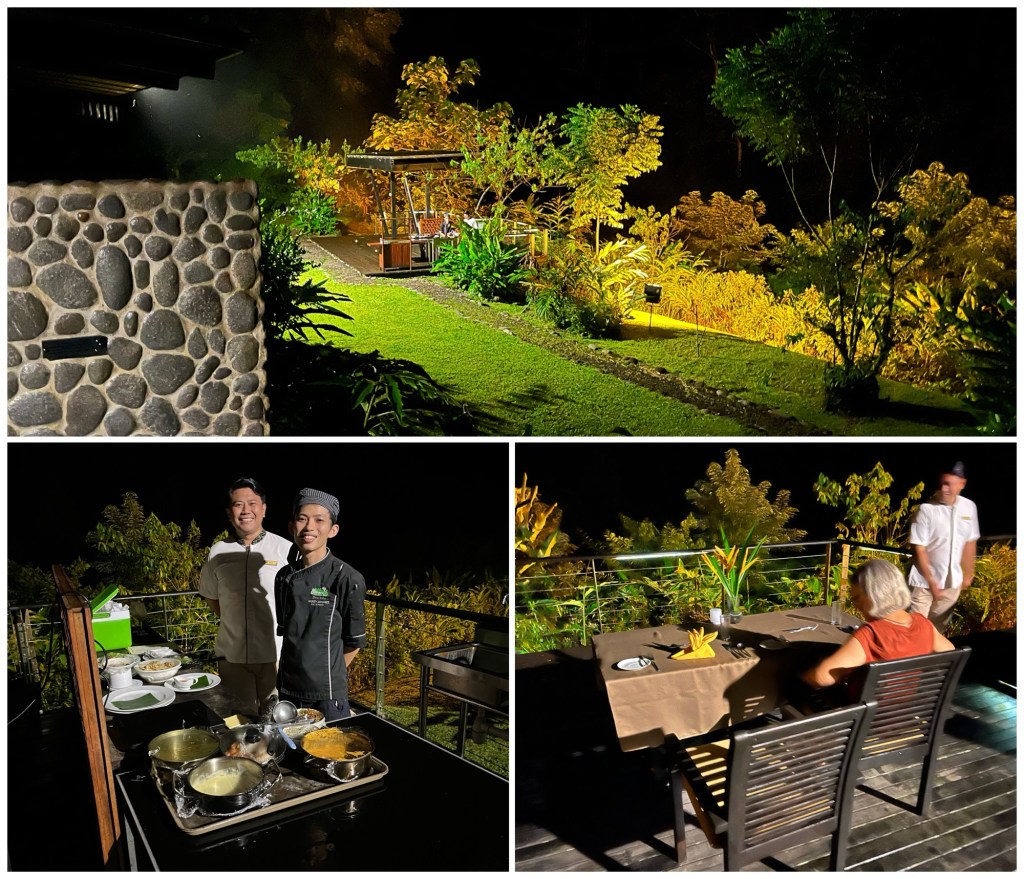 Every day, our butler, Estiva, would take our hiking shoes and bring them back the next morning, cleaned of mud, or pick up our laundry (another perk of the package), or bring us a surprise refreshment. That’s Estiva in the white uniform, below; the other guy was our chef for the night.