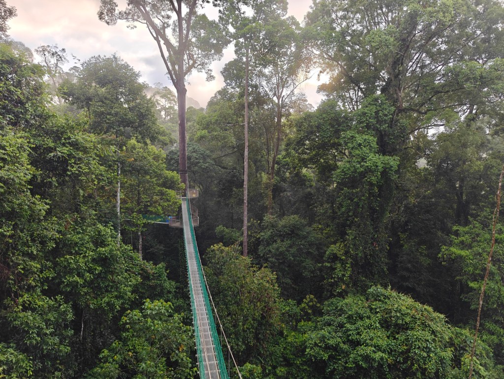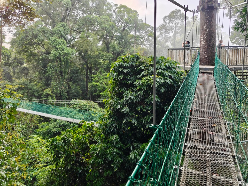 The Canopy Walk used to be longer than it is now, linking five trees to the trailhead, but lightning hit the 4th tree a couple years ago, so the suspended walkways and platforms beyond the 3rd tree are now being rerouted and rebuilt.