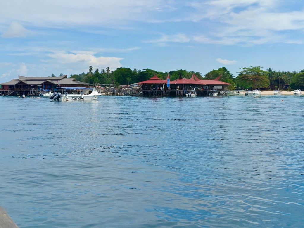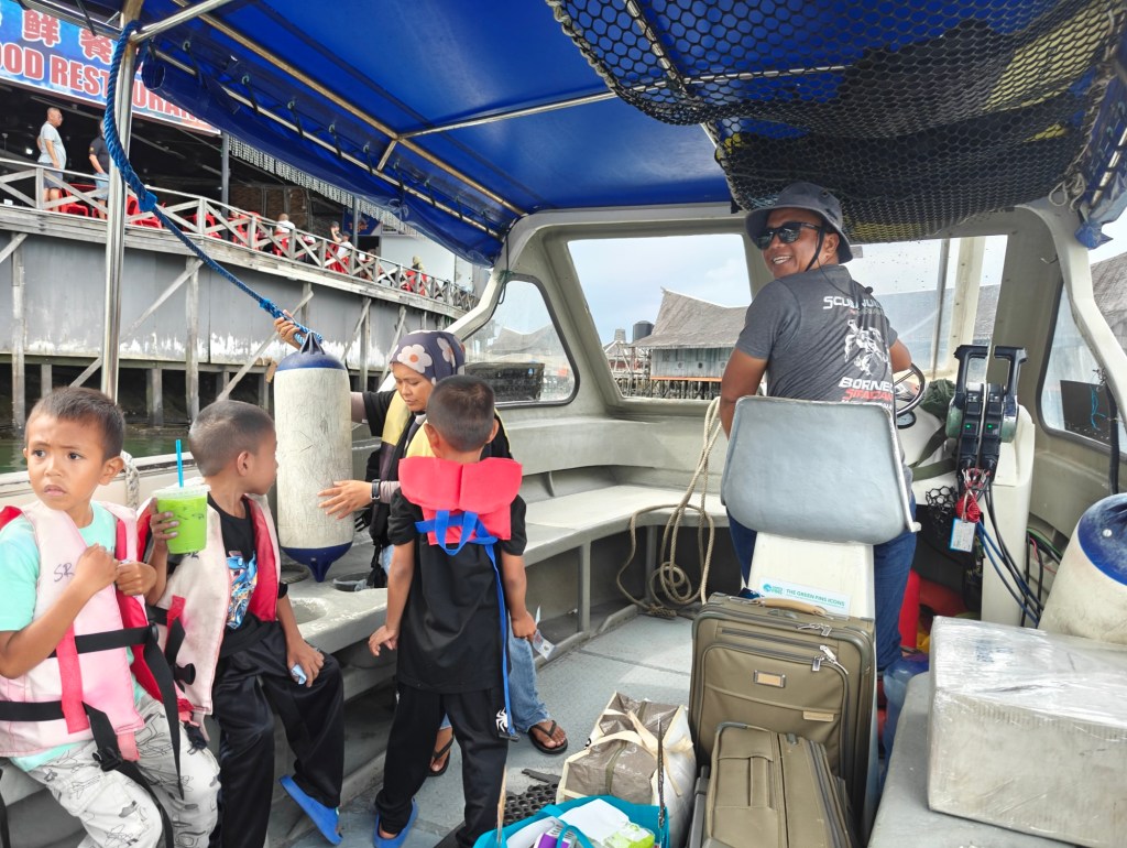 It was a 4-hour drive from Borneo Rainforest Lodge to Semporna where we hopped aboard the afternoon boat to Mabul Island. We’ve booked a couple days with Scuba Junkie Sipidan to go scuba diving there. Our cruise today was aboard one of the Scuba Junkie dive boats, serving today as a ferry.