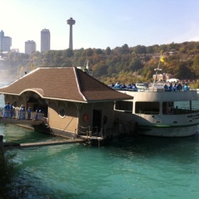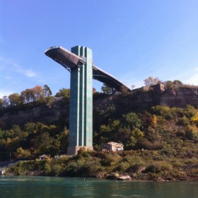 It was a beautiful day at Niagara Falls and the Maid of the Mist was running, so we donned our park-provided ponchos and off we went! There’s an elevator that takes you down to the loading dock. I took a picture of it as we pulled away. First, the boat passes the American Falls. They’re … Continue reading
