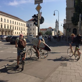 The sun came out in force on Friday, so we made our way to the English Garden (Englischer Garten) on the banks of the Isar River. As we have been wandering around town, we've occasionally seen surfers on bikes riding down the street: I had heard about river surfing in Munich, so we followed one … Continue reading