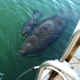 This morning, as we were sitting on our balcony enjoying a cup of coffee as the sun rose, there was a splash across the canal and Dale yelped, “Shark!” But it wasn’t a shark. It was a dolphin, feeding on fish in the canal. And he wasn’t alone. We counted three dolphin – an unusual … Continue reading