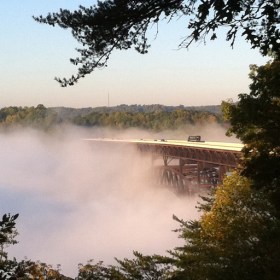 Leaving Fayetteville, West Virginia, this morning, we crossed over the New River. The gorge was filled with fog. The New River Bridge was completed in 1977. It is the longest single span steel bridge in the world and, at 876 feet above the river, the second highest bridge in the USA We hiked down to … Continue reading